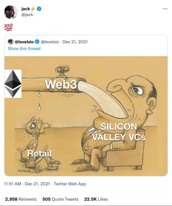 不过,Web3.0真的到来了吗?推特创始人多杰西做了一款实验证明,现在只是在WEB2.0与Web3.0的过度阶段,Web3.0依然只是概念。