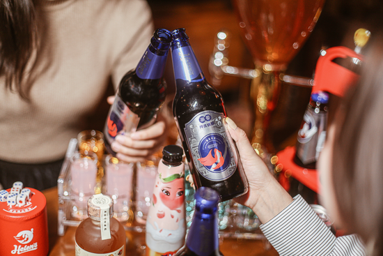 从在门口排队起,海伦斯就提供了休息区和免费畅饮的啤酒。入座后,不到10元的单瓶啤酒,让人直呼“便宜到喝多少都不心疼”。等到酒意正酣、人声鼎沸,店内音乐会自动调整到合适的分贝,让朋友间可以舒服地聊天,不像夜店输出全靠吼。