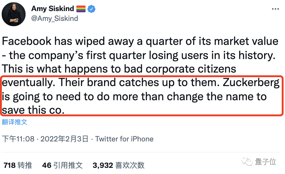 大概谁也料想不到,Facebook母公司更名Meta后首份财报发布,应声而来的竟是美国公司有史以来最大单日市值损失——