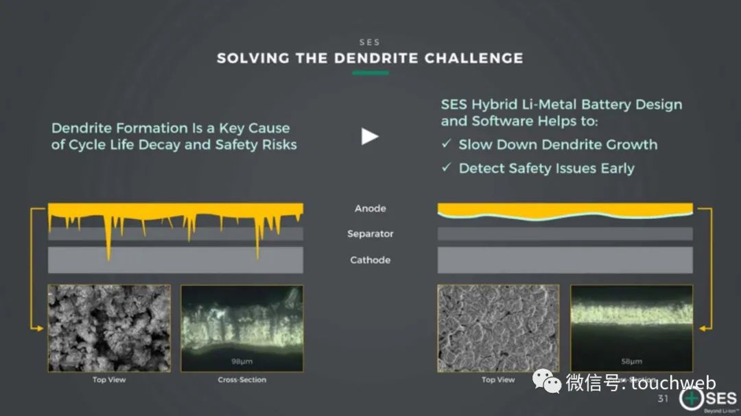 第二是电解液,SES致力于研发下一代高能量密度锂电池的电解液,从根本上改变锂枝晶的生长方式,提升电池的安全性。