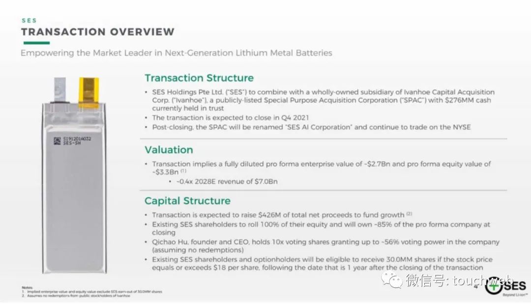 锂金属电池厂商SES日前与特殊目的公司Ivanhoe Capital Acquisition Corp完成合并,实现曲线上市。