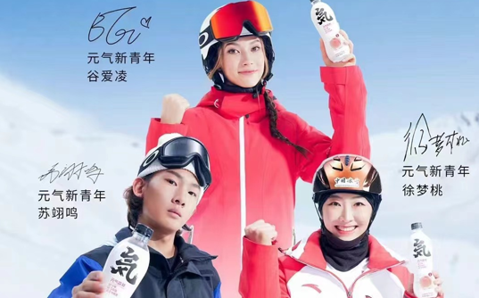 一款适合夏天喝的气泡水饮料,积极“入冬”,签了三位冬奥会冠军,借助其青春、健康的形象,辅助品牌宣传。