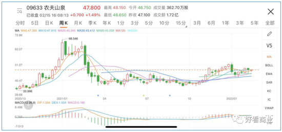 2021年下半年以来,农夫山泉的股价虽然有所回调,但较2020年的高点仍有较大距离。