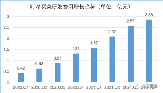 从财报看,叮咚的研发投入持续保持大幅增长态势。去年Q4,其研发费用达到2.85亿元,同比增长117%。