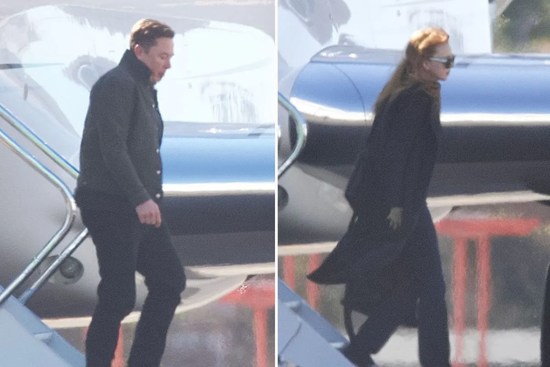 马斯克私人飞机抵达LA后,陪同他下飞机的是一位金发美女,穿着风衣,戴着太阳镜,然后由司机驾驶一辆特斯拉离开。