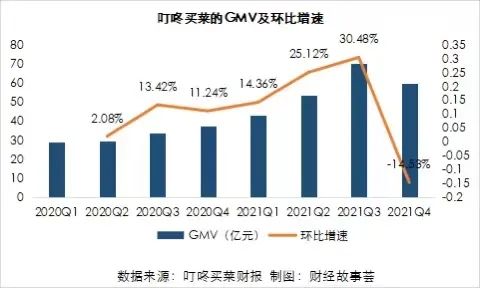 拆解财报可以发现,叮咚买菜Q4营收、GMV均出现了首次环比下降。