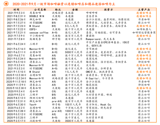 据深圳晚报报道:2021年8月,资本对于咖啡领域的融资“热情高涨”,一个月时间内,咖啡领域就发生了三轮融资,SEESAW咖啡宣布完成过亿元A+轮融资;M Stand咖啡获得超5亿元B轮融资;时萃咖啡宣布完成近亿元新一轮融资。此外,2021年该赛道已发生约21起融资事件,融资总额超46亿元。