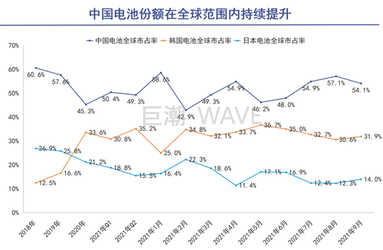与股价相对应的是,根据韩国SNE新出炉的数据显示,2021年宁德时代在国际和国内上的市场占有率却在持续提升:宁德时代在全球的市场占有率超过了32.6%,国内继续保持50%以上。
