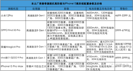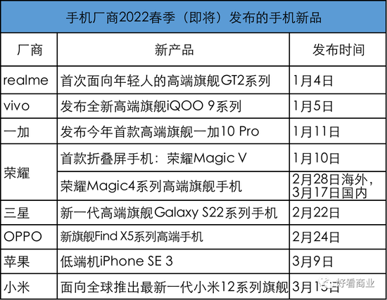 除了苹果或将在今年春季发布会上推出低端手机——iPhone SE3外,本土厂商都在推高端机。