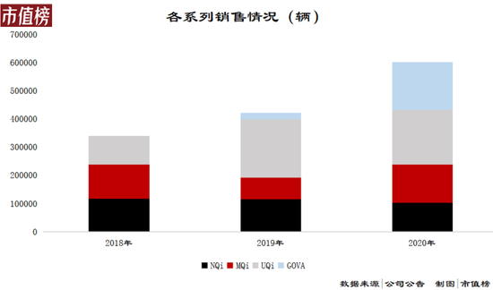 对比2018年—2020年各个系列的销量,可以看到,高端系列里,NQi系列销量下滑是持续性的,MQi系列有反复,可能与车型有关,UQi系列2020年销量降低,难以判断是受疫情影响还是趋势问题。