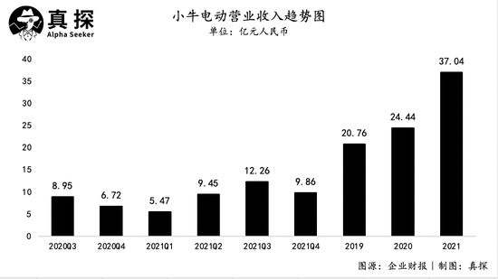 2021年第四季度小牛电动收入9.86亿元,同比增长46.7%;2021年全年收入37.05亿元,同比增长51.6%;
