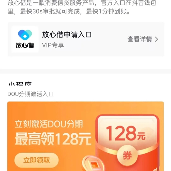 去年11月初,字节跳动又开始定向内测金融产品“放心花”,这款类似于支付宝“花呗”的消费贷产品内嵌在抖音与今日头条中,获得入口的用户可以在个人中心的钱包中看到。据虎嗅报道,“放心花”的最高额度为1万元,仅限于在抖音App内购买DOU+使用,无法提现,采用与“花呗”类似的当月消费下月还的机制,申请流程则与2018年上线的“放心贷”基本类似。