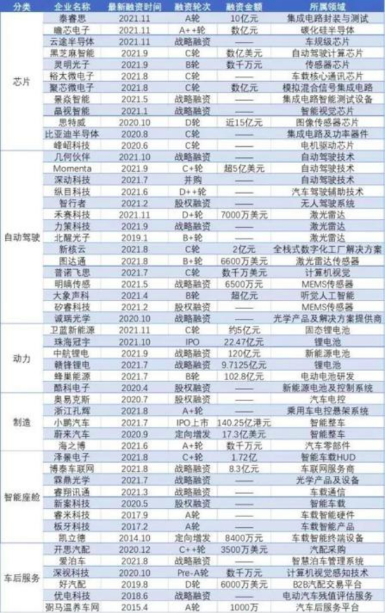 此外,由小米发起设立的长江小米产业基金在2021年相继投资了新能源电动车辆控制系统开发商嘉晨电子、自动驾驶计算芯片制造商黑芝麻智能、汽车级芯片领域无晶圆厂半导体研发商云途、自动驾驶软硬件产品研发商几何伙伴、自动驾驶及高级驾驶辅助系统技术产品供应商纵目科技等近四十家新能源汽车产业链公司。