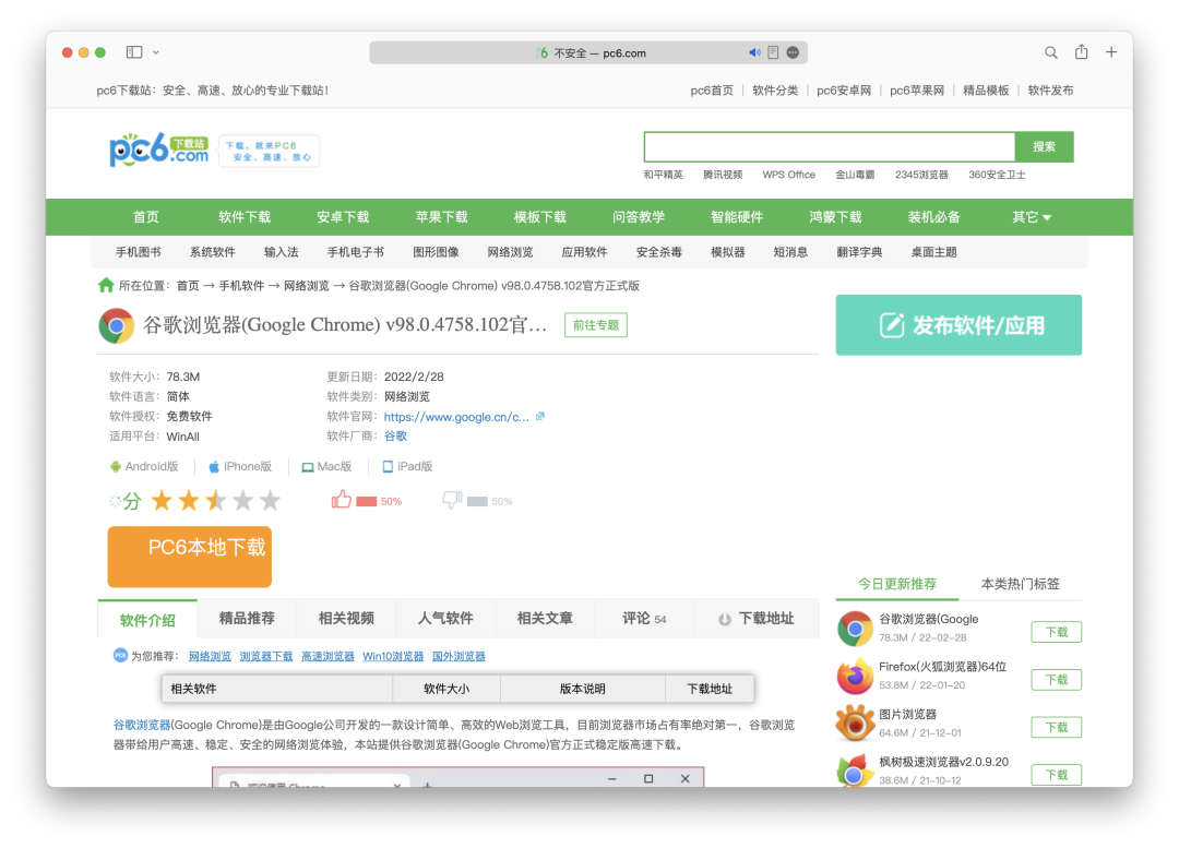 但真正扯下网站遮羞布的,还是315晚会曝光这种行为之后这些网站的操作。以315晚会点名批评的PC6.com为例,在节目曝光后,网站第一时间移除了下载页面硕大醒目的“高速下载”按钮,只剩下“PC6本地下载”的选项,可能由于功能上线匆忙,这个新增的下载按钮甚至没来得及被描述文字居中放置,让这个下载页面看起来更像一个闹剧。