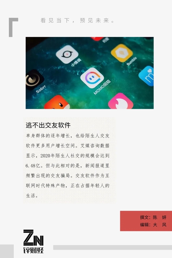 陌生人交友作为移动互联网时代的特殊产物,承载了当代年轻人的一种需求。但不争的事实是,在这样的需求之下,这类App也成了灰产、诈骗、杀猪盘的滋生地,而这样畸形的商业生态也养活了陌陌、探探和soul们。