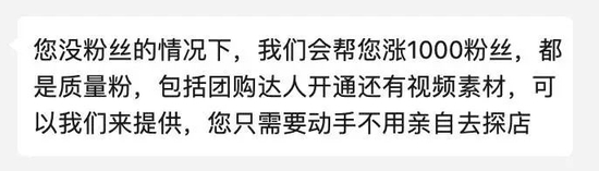 针对那些已经开通了团购功能但粉丝少、流量差、选品没经验的初级达人,他们也有“收割”小妙招。瞄准初级达人的资源缺口,这些培训机构宣称,可以对接海量商家资源,直接提供商家素材,在家就能“云探店”。