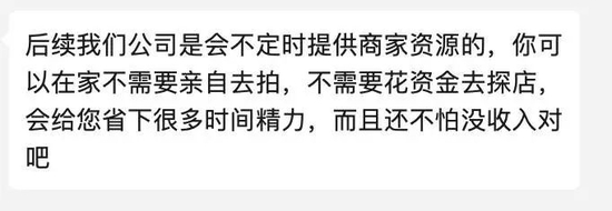 于是,优质的商家资源,就成了一些达人孵化机构、代运营机构“收割”这批初级达人的另一个噱头。不过,他们提供的所谓的“资源”,大多数并非帮达人对接商家进行探店,而是直接提供已经拍摄好的探店素材,“你只需要动手,不用亲自去探店”。