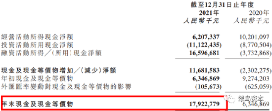 再来看,京东物流的现金流情况。截至2021年12月31日,现金及现金等价物为179.2亿元。