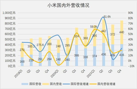 去年全年,小米国际营收为1636亿元,同比增长33.7%。