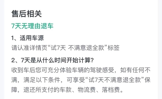 真正让周明打消顾虑的是瓜子二手车的“7天无理由退货”。不是所有车都能7天无理由退货,比如新车不能;也不是所有二手车都可以7天无理由退货。