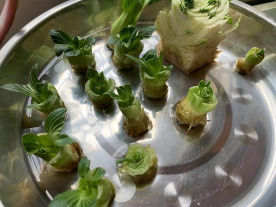 在上海居住的谭笑在小区封禁的日子里,开始尝试水培上海青。她照着网上的教程,真的成功水培出了一些上海青:“长势喜人。”