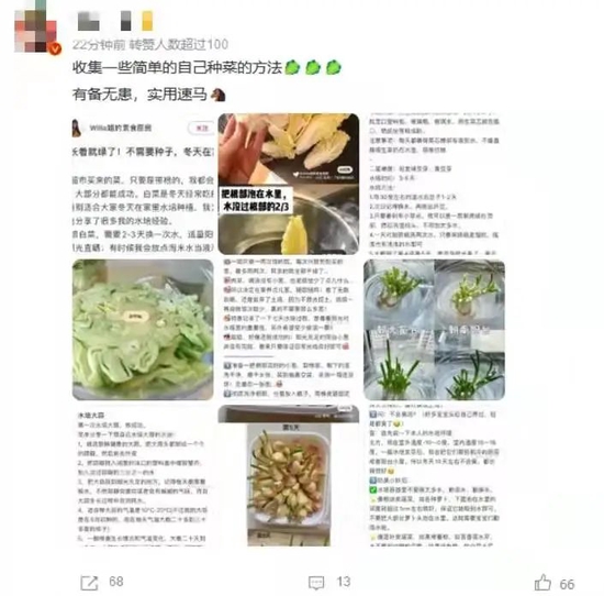 物资总是有限,可持续才是安全感的保障,于是有人“种菜基因”大动。如今不仅有晒出自己在阳台种菜的图片和视频,种菜攻略也已经在社交媒体流传。