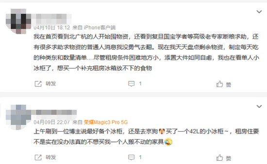 更有还在封控中的上海居民不愿“等到解封后买个冰柜”,决定立刻行动,冰柜我现在就要。