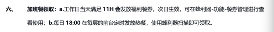此外,《新员工第一天应知应会》还明确:前一日工作时间超过11小时,第二天才会领到免费晚餐。