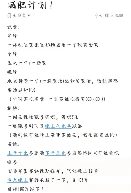 运动方面,“她一般用软件打卡,告诉我消耗热量,半个月瘦了有十斤。”林钰说道。