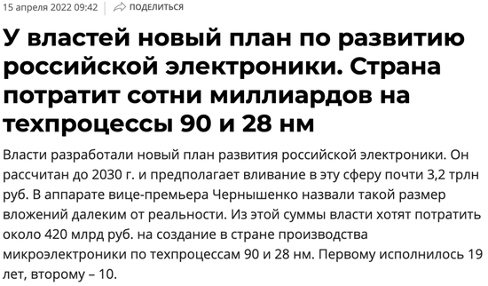 最近,俄罗斯贸易和工业部的22个工作组共同参与起草了一份,目标雄心勃勃,但资金十分有限的半导体发展计划。该文件将于2022年4月22日送交俄罗斯总理审查和批准。