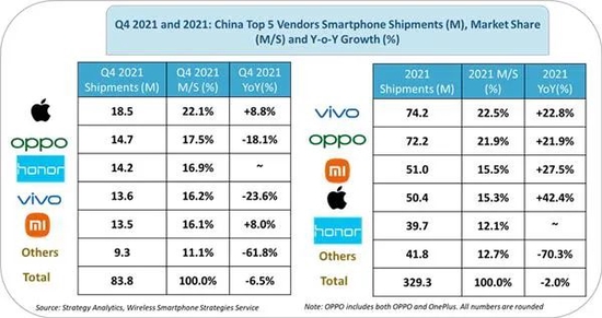 2021年,苹果气势如虹,iPhone的销量高达历史性的2.39亿部,在2021年第四季度超过三星成为全球销售冠军。