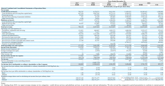 360数科2017年、2018年、2019年、2020年、2021年运营利润分别为2.1亿元、16.45亿元、28.94亿元、37.9亿元、67.86亿元(约10.65亿美元);