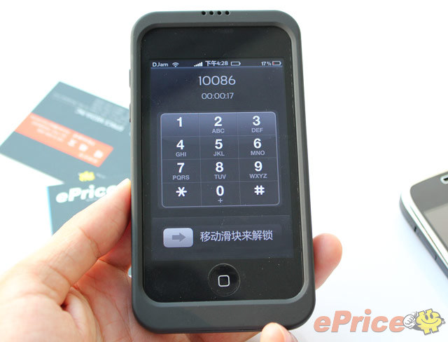 在苹果皮上,集成有SIM卡插槽、听筒等部件,内置电池容量是800mA,可以待机120小时,实际通话时间是3小时。