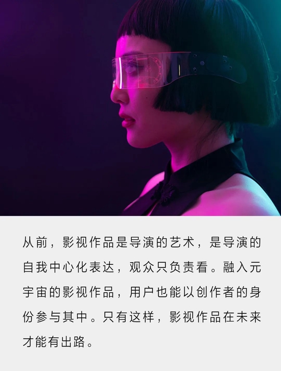 从前,影视作品是导演的艺术,是导演的自我中心化表达,观众只负责看。融入元宇宙的影视作品,用户也能以创作者的身份参与其中。只有这样,影视作品在未来才能有出路。