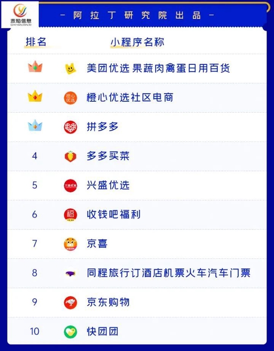 据“社区新零售观察”此前所写,“2021年618期间,网络购物小程序最热的看点的则是处于风口浪尖之上的社区团购。”彼时,在阿拉丁的“618小程序排行榜”中,包括橙心优选,多多买菜、兴盛优选在内的社区团购小程序入榜前10。