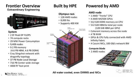 全新的Frontier占地372平方米,由74个HPE Cray EX机柜组成,可容纳9408个节点。
