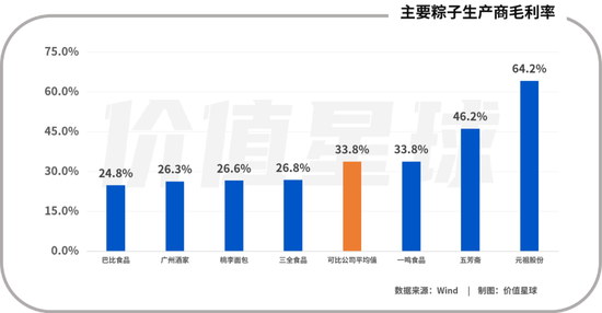 显然,粽子是五芳斋的王牌单品,可以称得上是“现金奶牛”业务,粽子系列产品的毛利率一直稳定在46%左右。