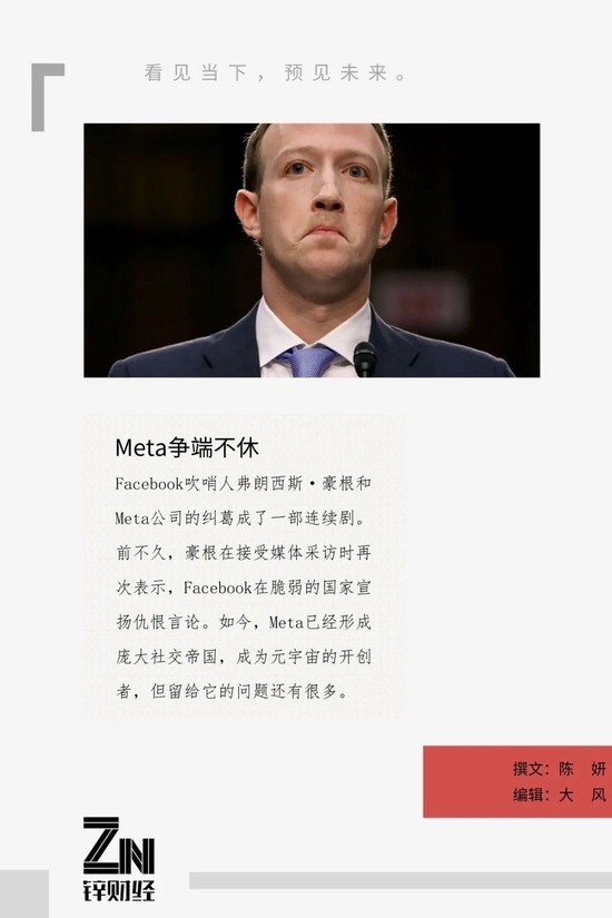 对一个架空于现实世界的虚拟社交帝国来讲,从图文视频时代,跨入“元宇宙”时代,更大的风险和质疑都会压向扎克伯格和Meta。但客观上来讲,要制定一套虚拟世界的规则,也并非依靠Meta一家公司就可行的,更不能把制定规则的权力交到由扎克伯格说了算的Meta手中。