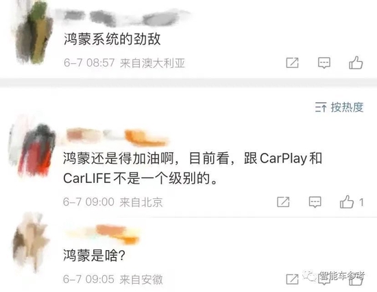 也有网友表示更加看好苹果,“鸿蒙还是得加油啊,目前看,跟CarPlay不是一个级别的。”
