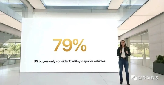 苹果透露的数据显示,目前北美在售的汽车已经有98%支持CarPlay,76%的购车用户表示只会考虑带CarPlay的车型。