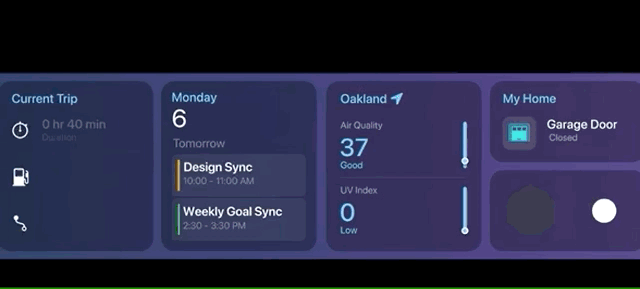 iPhone小组件也可以显示在仪表盘或者中控屏上,比如时钟、天气和音乐等。