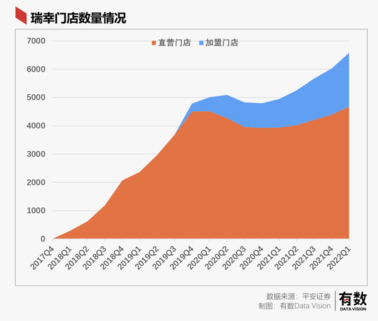 因此增长的压力就集中到了门店数上,与之前不同的是,目前瑞幸扩张门店的方式有两种,分别加盟和直营。放开加盟的意图其实也很明显,就是降低自身的经营风险,这一点从瑞幸公布的加盟战略书也得到了清楚的体现。