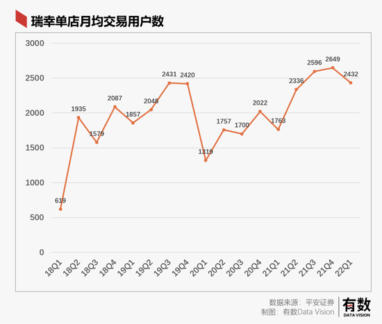 同季度,瑞幸的月均交易用户首次突破暴雷前的数量达到1228万户的新高,且在一年内不断增长屡创新高。今年1季度则因为瑞幸主阵地一二线城市的疫情反复,而有所下滑。