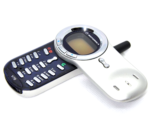 时间回到2002年,直板、翻盖与滑盖几乎囊括了彼时所有的手机形态,在此背景下,摩托罗拉祭出了旋盖手机V70,后者一经问世便成为了时髦的象征,炒价一度升至发售价的两倍,将摩托罗拉送上了高端新台阶。