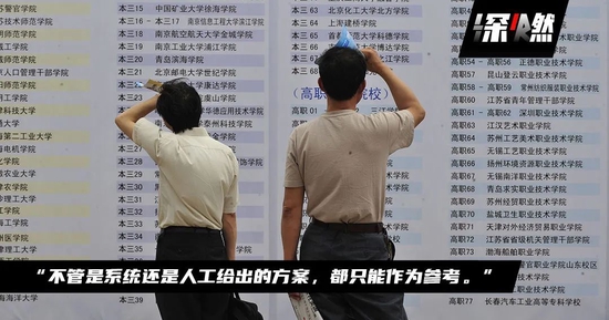 杨帆认为,不管是系统还是人工给出的方案,都只能作为参考,“希望家长们还是要靠自己,要利用好工具,而不是依赖于工具,对自己最了解的还是自己。要客观分析大学和专业,与自身的能力、个性、爱好、不足结合。同时,第一产业、第二产业等很多基础产业需要大量的顶尖技术性人才,也可以考虑,不要过分迷信热门专业。最后,一定要看清合同中的服务条款。”