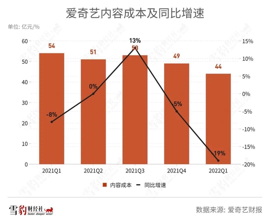 一季度,爱奇艺各项开支均大幅减少,在运营成本中占比超60%的内容成本同比下降19%。爱奇艺在财报中称,内容成本的下降是由于公司改进了内容策略,减少了综艺节目的推出。