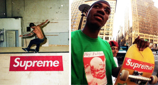 1994年4月Supreme创立时,它只是SoHo其中一间滑板店。James仅是为处在萌芽期的纽约滑板圈提供一个小据点。开业时Supreme只做了三件T恤:《出租车司机》德尼罗剧照、爆炸头滑手照片和BOX LOGO。