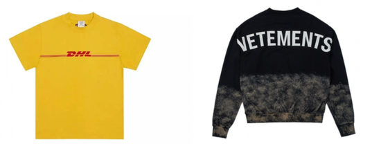 2013诞生于英国伦敦,Vetements独特的外观与街头模特和地下演员相结合,在underground club和中国餐馆中出现,为巴黎时尚带来了一股新的活力,该品牌话题性十足的作品总是成为热搜,比如DHL的T恤,代表着全球化,德国公司黄底红字 logo 也成为大众文化的一部分。当大品牌 logo 逐渐被认作俗气并遭到淘汰时,作为大众文化的、非时尚的显眼 logo 却越来越多出现在高级时装品牌的产品中。