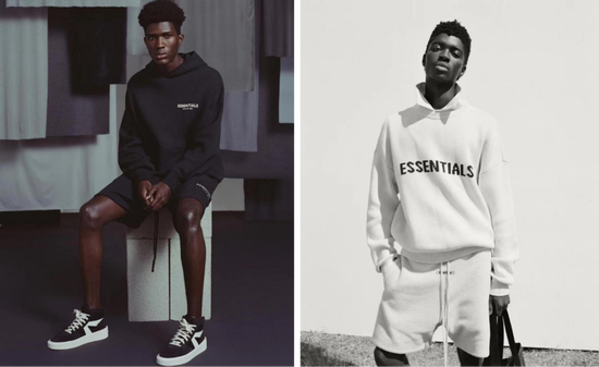 2018年诞生了ESSENTIALS,依旧比FOG主线更加实惠,区别在于提供名称所暗示的含义,wardrobe essentials(衣橱必备品),包括印有品牌名的运动衫、圆领衫、卫衣,每天都舒适地穿着,受众是年轻人,今天穿着essentials的人甚至比穿主线或者Nike联名的人都多。