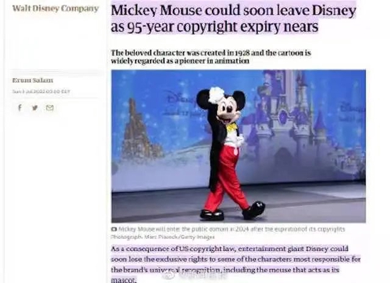 据《卫报》7月3日报道,米老鼠95年的版权保护期进入倒计时,2024年1月1日开始,这一王牌IP的版权就不再是迪士尼独有,这无疑会让迪士尼蒙受一定版权收益的损失。